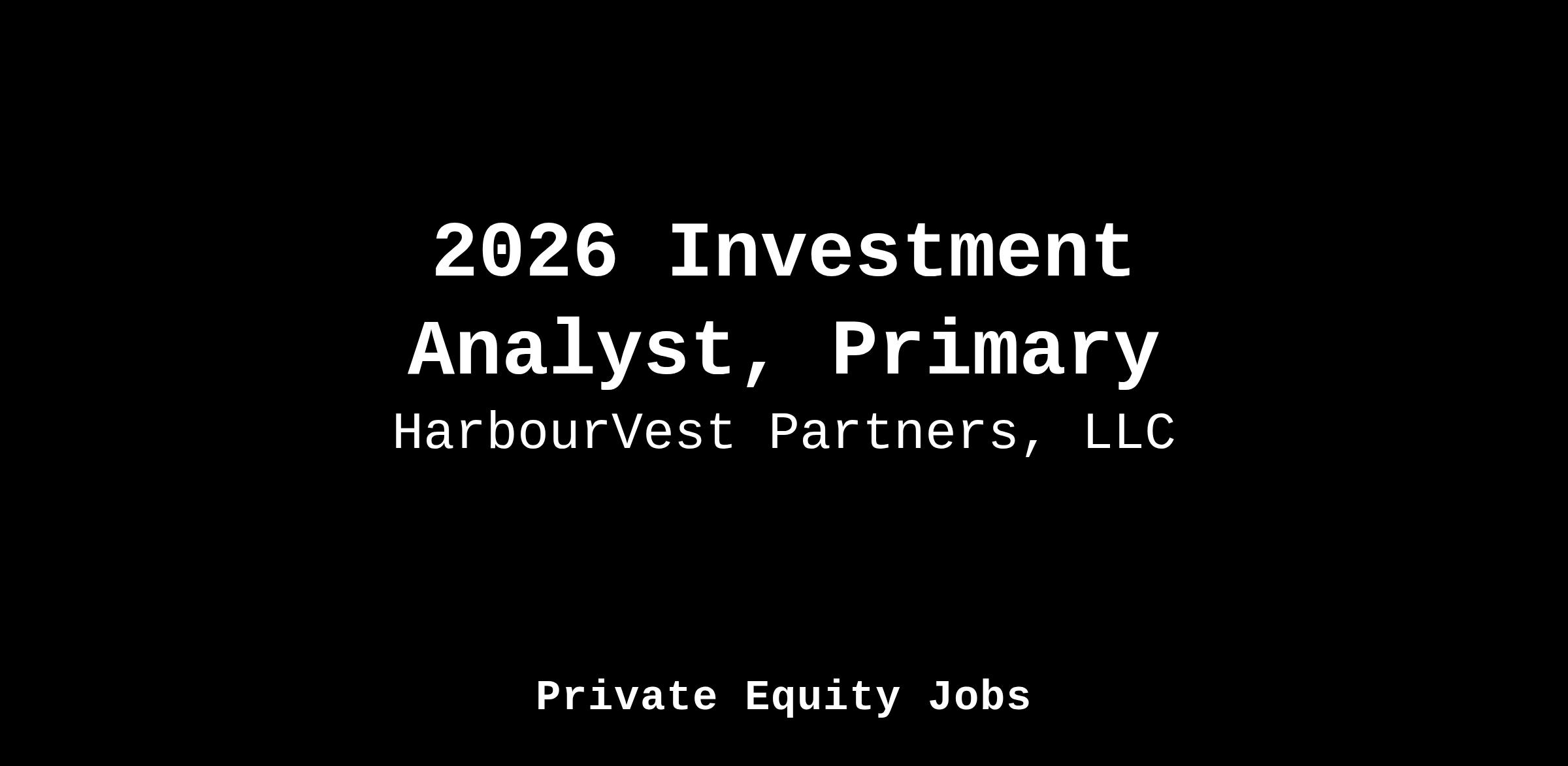 HarbourVest Partners is currently seeking candidates for our 2-year Analyst program in the Primary Investment Group in Boston, MA, starting Summer 2026. Our Analyst program is designed to offer a unique experience that will launch your career through a role dedicated exclusively to the Private Equity and Venture Capital markets. After training, Analysts will be an integral part of HarbourVest’s Primary Team, conducting due diligence on Private Equity and Venture Capital managers and fund opportunities alongside collaborative deal teams, and working on portfolio and pipeline management projects.