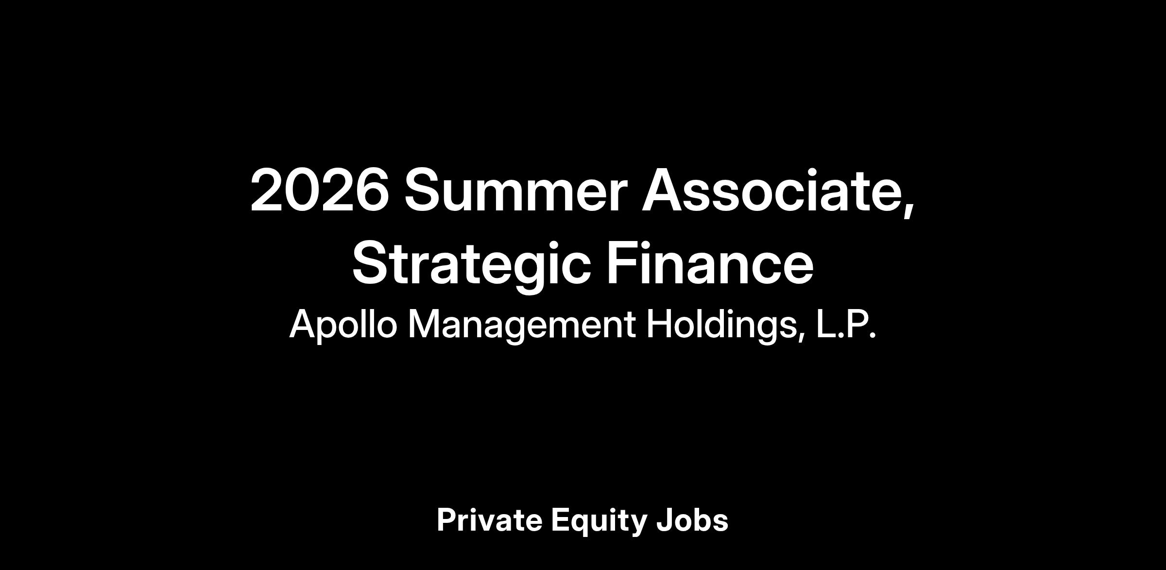 $110,000-$125,000Apollo Global Management, Inc. (together with its subsidiaries and affiliates) is committed to championing opportunity.