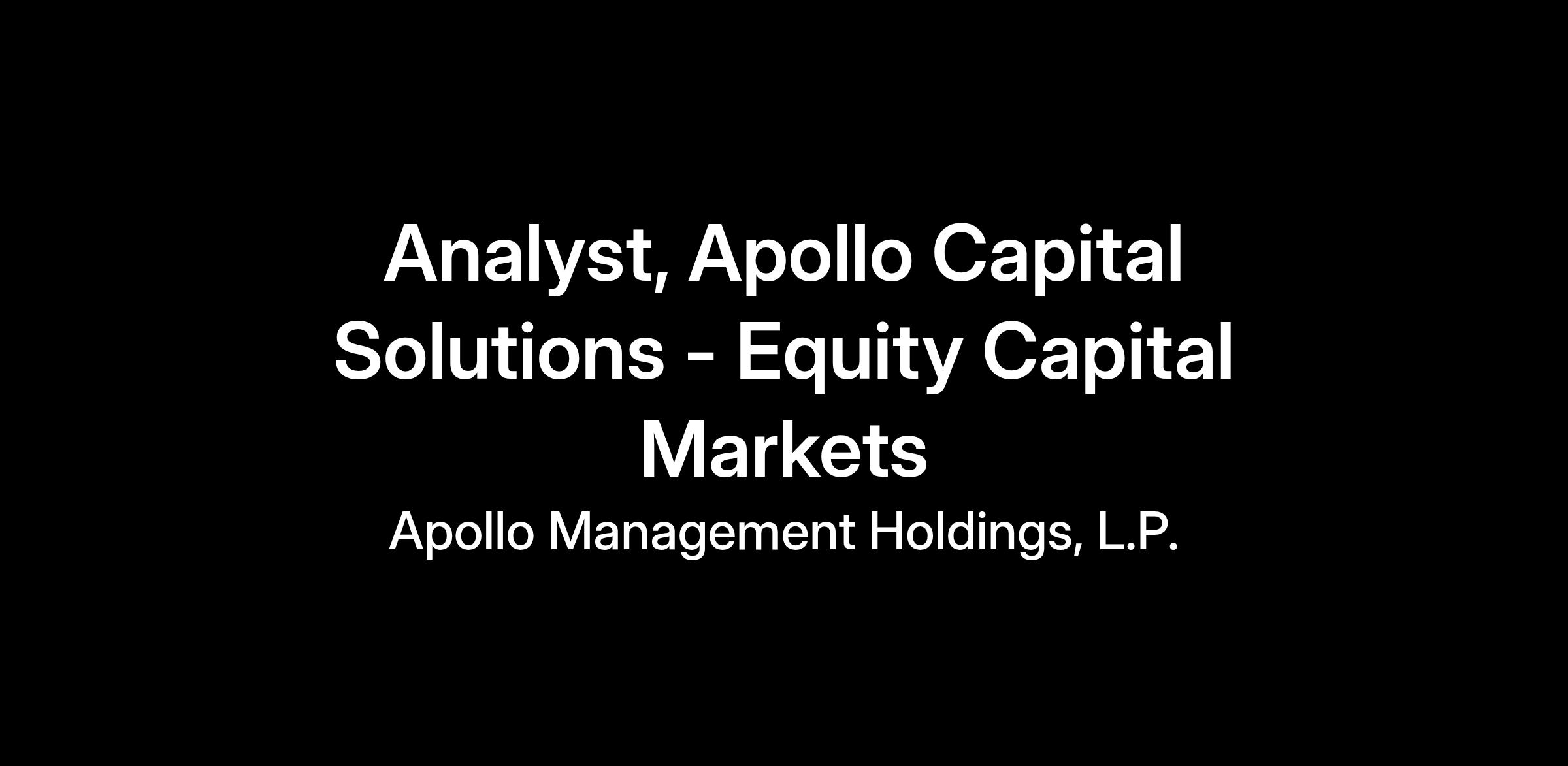 $110,000 - $150,000Apollo Global Management, Inc. (together with its subsidiaries and affiliates) is committed to championing opportunity.
