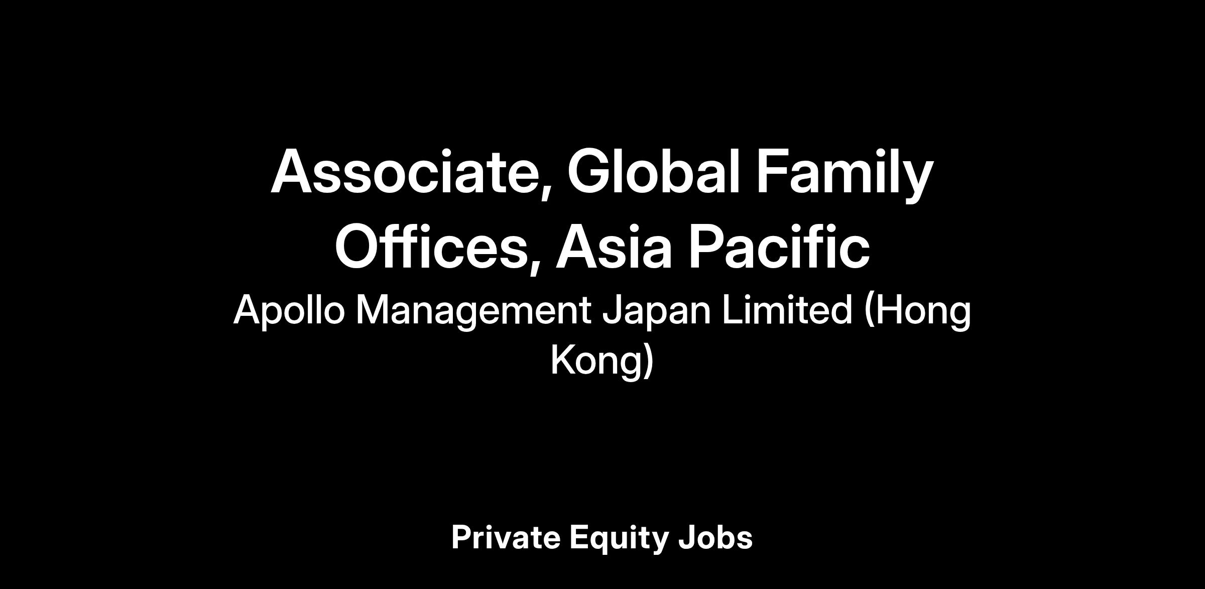 Apollo is seeking an Associate to join our Global Family Office (GFO) coverage team in our Hong Kong office. This newly created role will ideally suit a high performing junior investment banker or alternatives sales / wealth management executive looking to support our coverage efforts of leading Family Offices & Businesses across Asia Pacific (APAC). Our offices in APAC span 6 key countries / locations: Singapore, Hong Kong, Tokyo, Sydney, Mumbai, and Seoul.