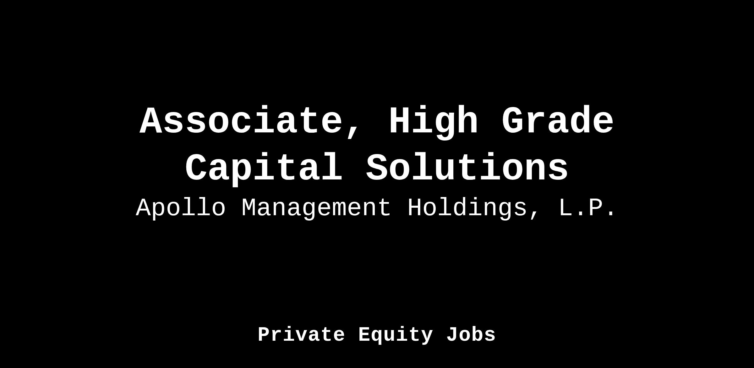 The team is seeking a solution-oriented investment professional to join the High-Grade Capital Solutions (HGCS) team. This role will focus on developing, structuring, investing, and managing large and complex investment opportunities for the Apollo platform, primarily our permanent capital base, with a strong emphasis on modeling, structuring, presentation, due diligence, tax/accounting skills, and background. The candidate will be an important addition to the team and will be involved in all stages of the investment process, including origination, structuring, execution, and the investment approval process.