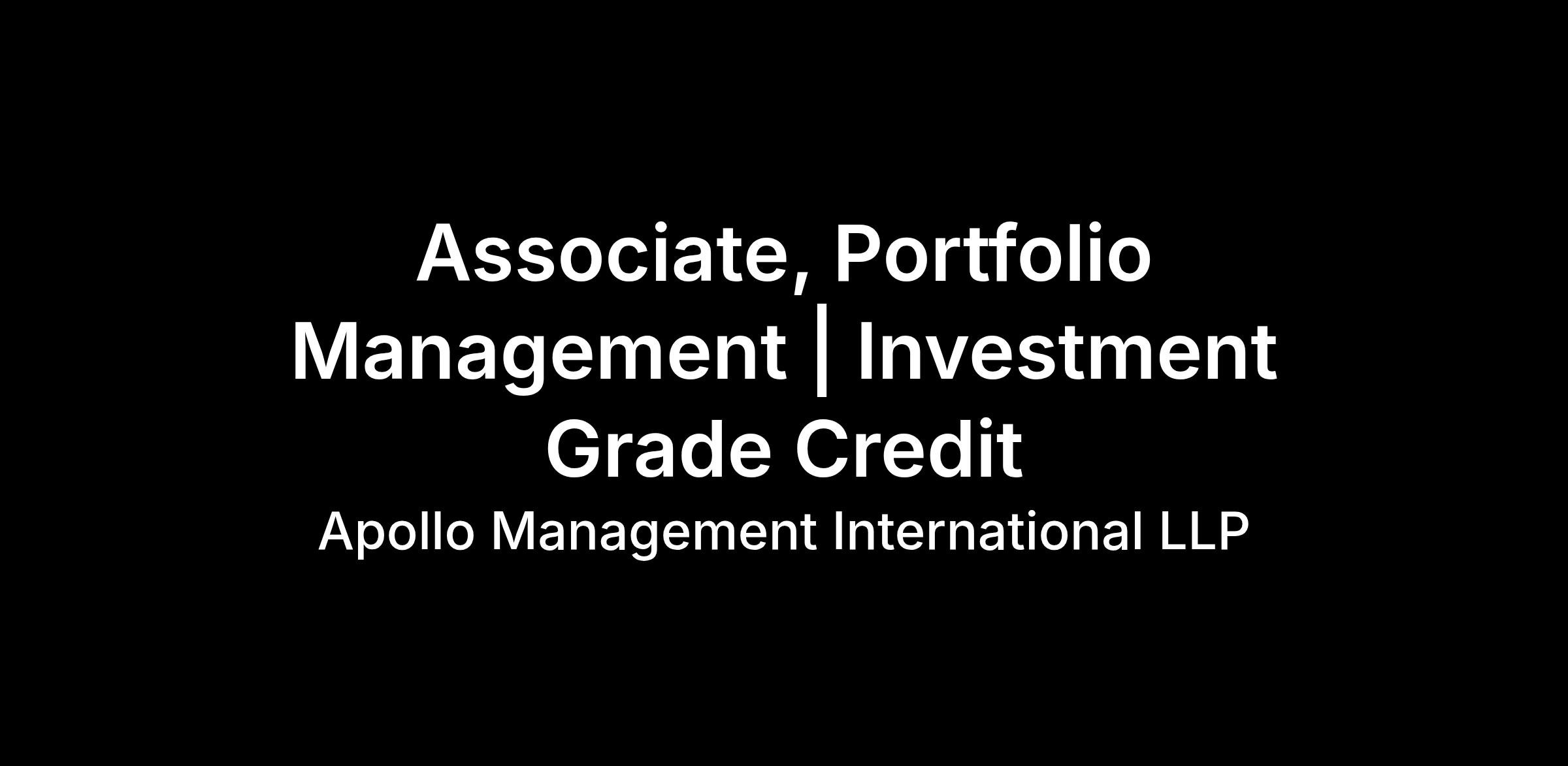 Apollo is seeking a Associate to Join the Portfolio Management team within its European Investment Grade Credit group in London.