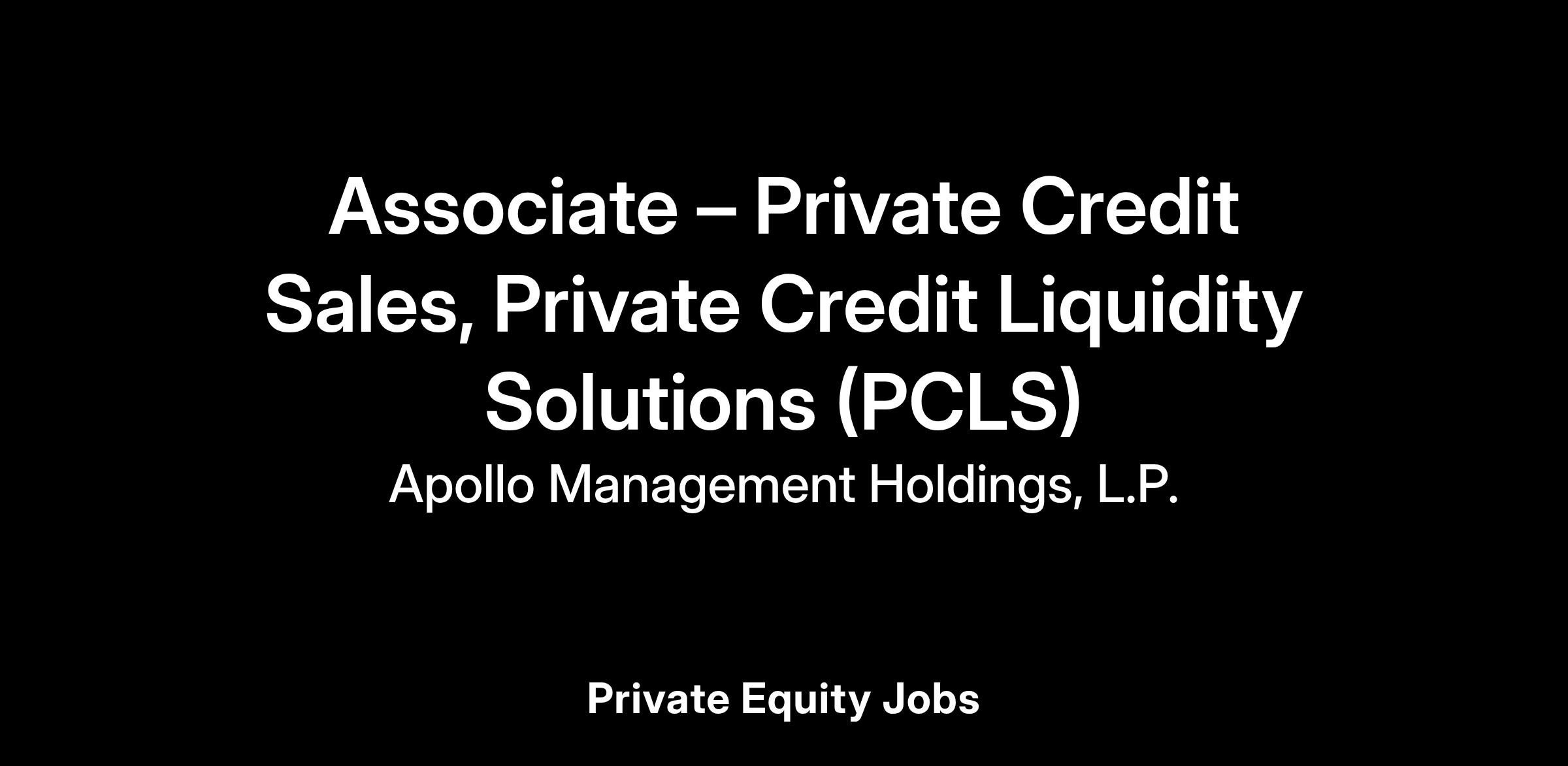 The Apollo PCLS Sales team is part of Apollo’s Capital Solutions platform, focused on providing liquidity across private credit and structured products. They specialize in trading asset-backed securities, private credit, and other alternative fixed-income instruments. The team combines deep technical expertise with a collaborative, entrepreneurial approach to deliver tailored solutions to institutional clients. This role is an exceptional opportunity for an ambitious, analytically minded sales professional to help build and scale a differentiated business at the intersection of private markets, credit, and structured finance.
