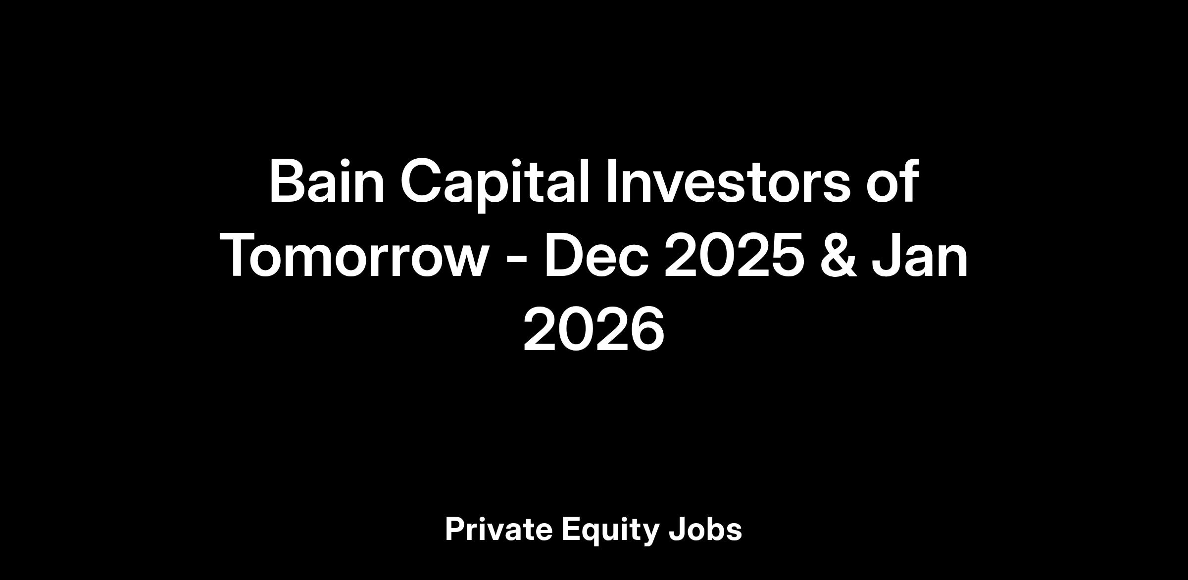Bain Capital Investors of Tomorrow - Dec 2025 & Jan 2026