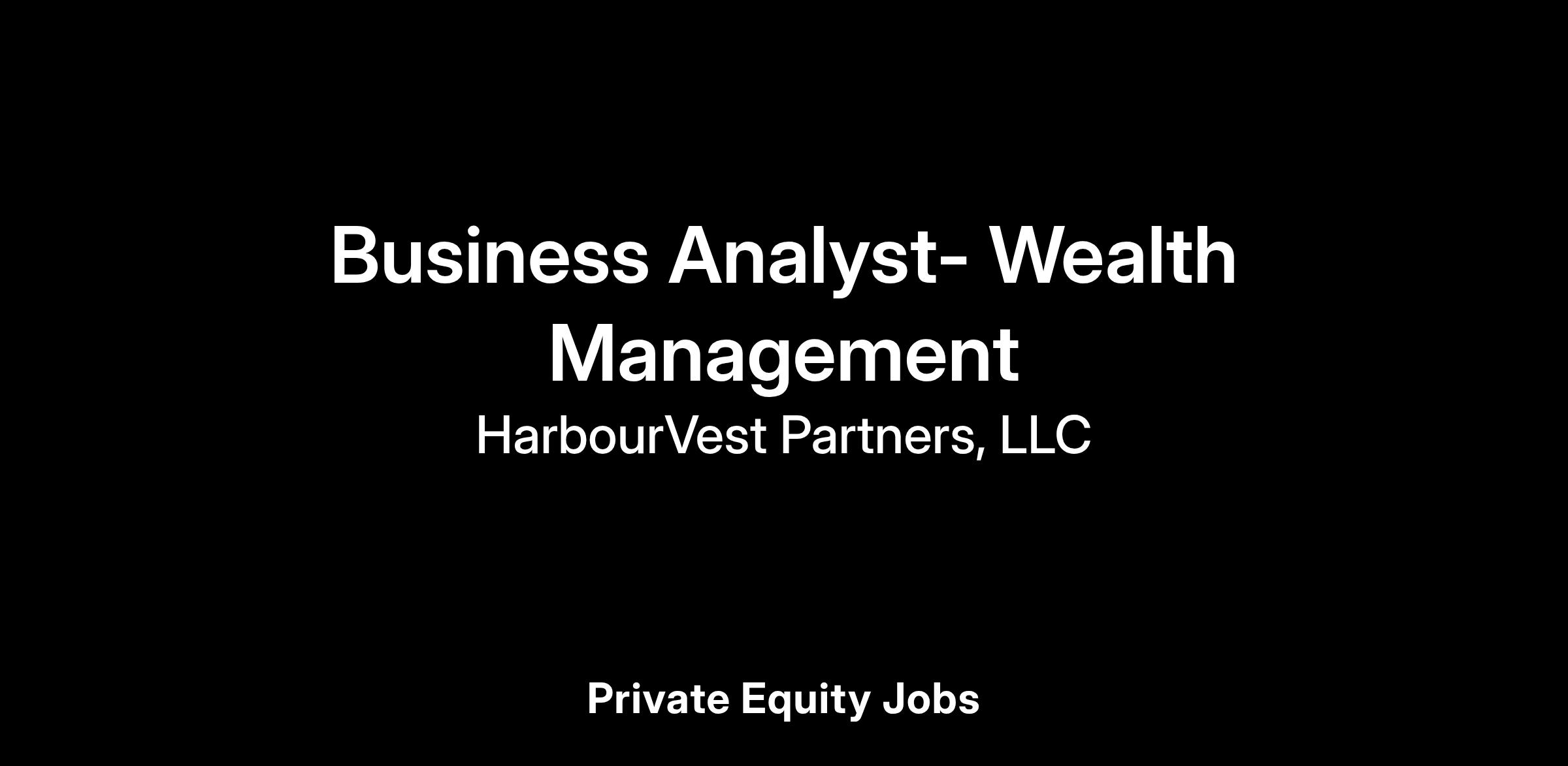 This Business Analyst role will play a key role on the Wealth Management team within the IT organization. This is an exciting opportunity for an individual to join a newly formed team in a dynamic and fast-growing area of HarbourVest looking to implement new and innovative solutions to serve our wealth client needs.