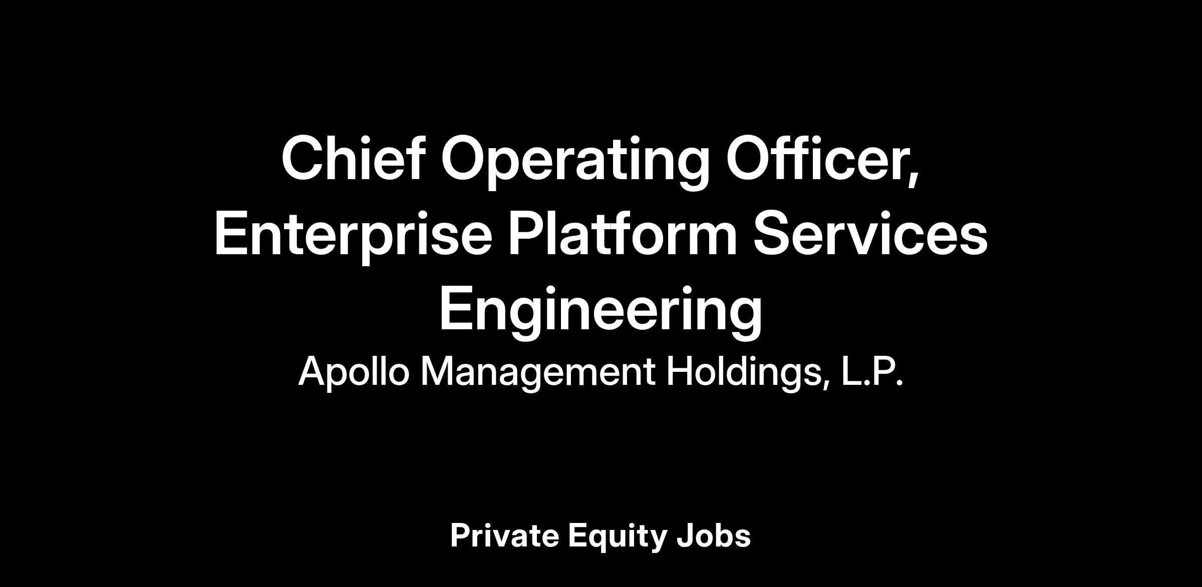 The COO will oversee the operational backbone of EPS, driving efficiency, resilience, and alignment with Apollo’s strategic objectives. This position leads operational excellence and modernization, upholds reliability and security standards, and manages cross-functional initiatives to enhance technology experiences for both the business and employees. Key responsibilities include process improvement, vendor management, financial management, change leadership, and building an inclusive, high-performing team.