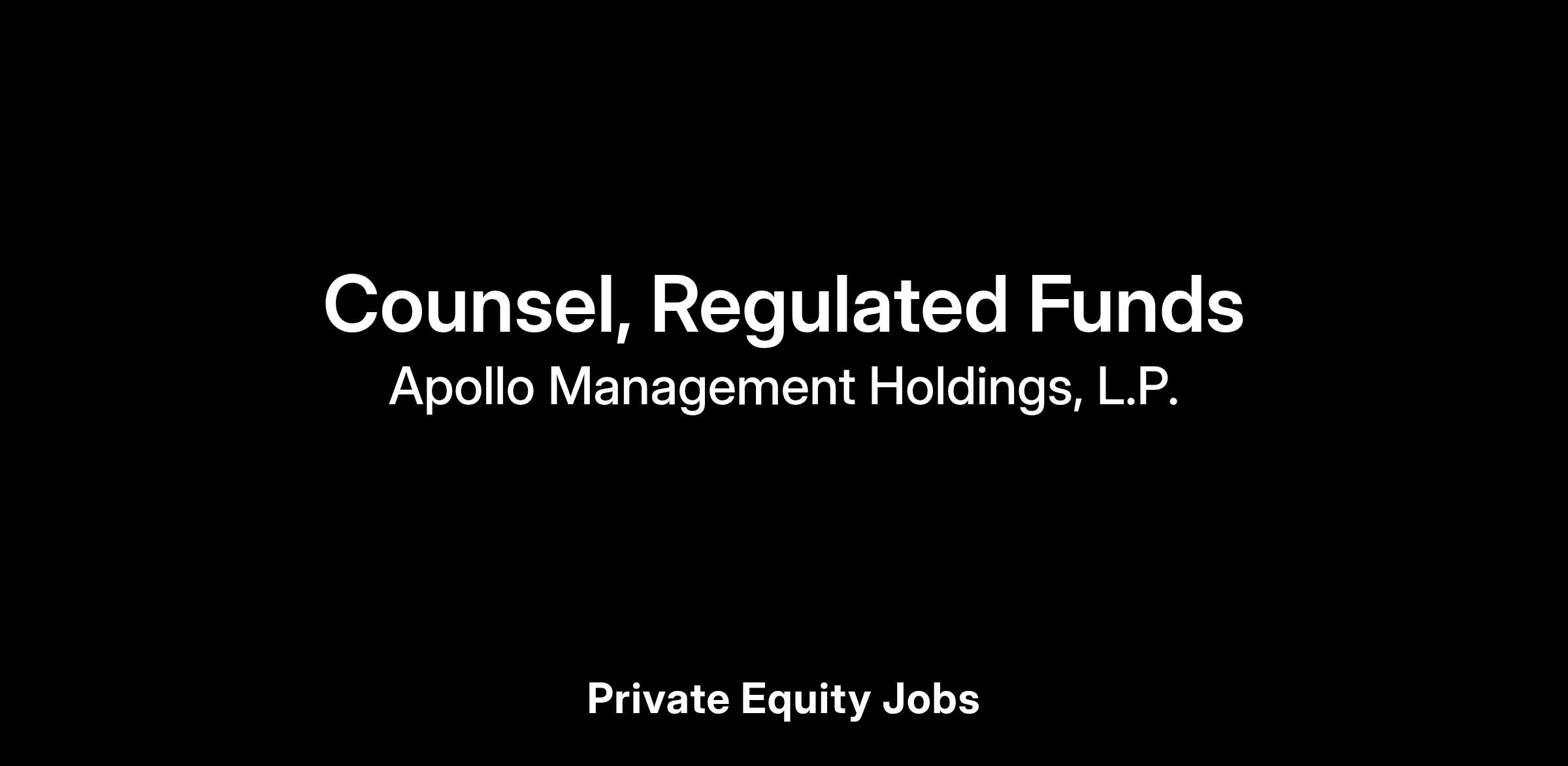 The Regulated Funds Counsel will be responsible for providing legal advice and support for Apollo’s direct lending platform, which includes registered investment companies, business development companies and other permanent capital vehicles. Counsel will manage the day-to-day legal operations of the Apollo regulated funds and partner with other members of the legal team and other professionals on corporate governance matters, co-investment transactions, strategic and capital markets transactions, global wealth initiatives, and other general corporate matters.