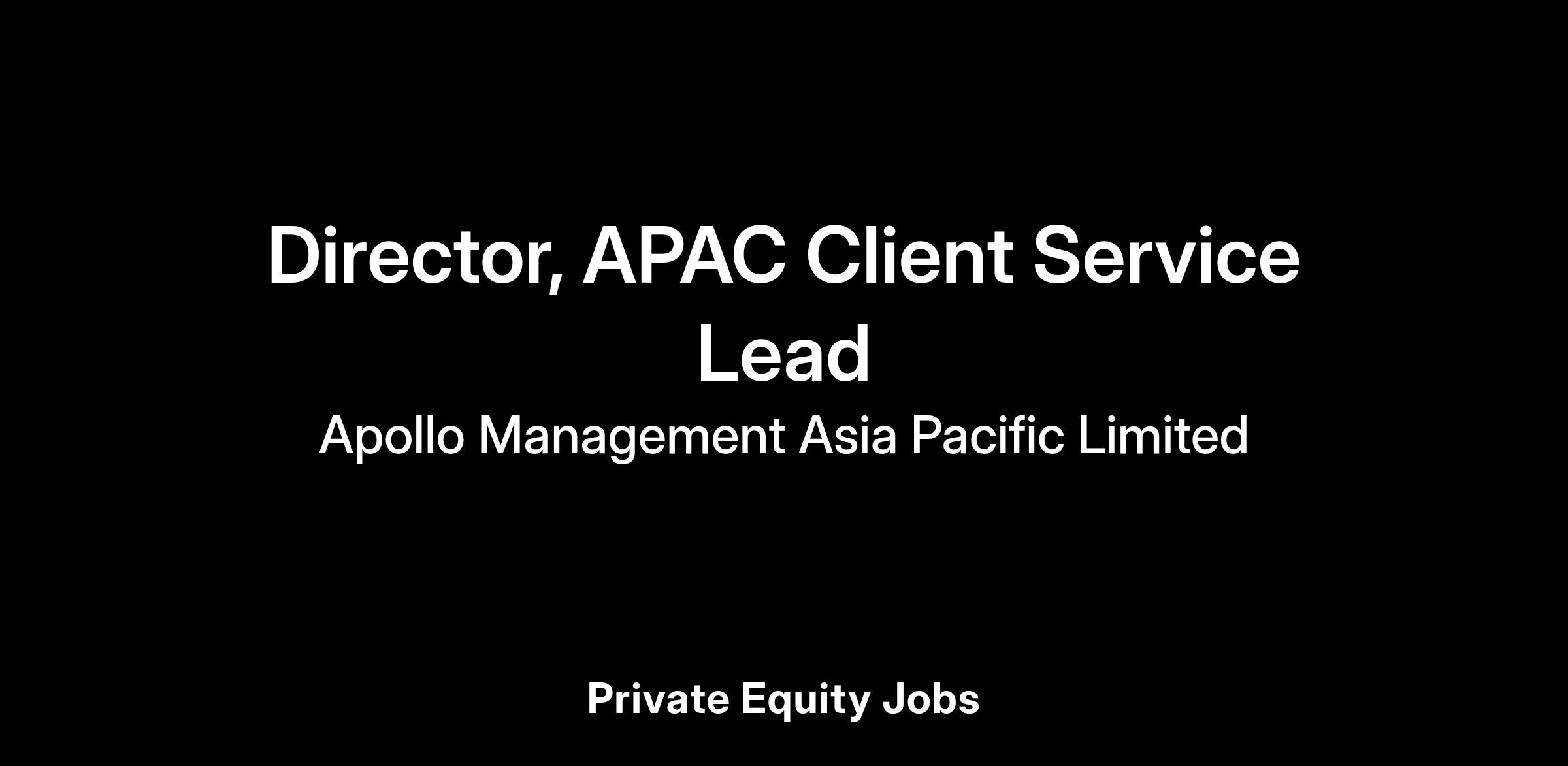 Apollo is seeking a driven individual to lead the firm’s APAC Client Service Group which provides ongoing client service in this region for Institutional & Global Wealth client-bases. The primary focus of this individual will be supporting our regional clients & sales teams directly, while managing and cultivating a wider client service team across different geographies including Hong Kong, Tokyo, Seoul, and Singapore.