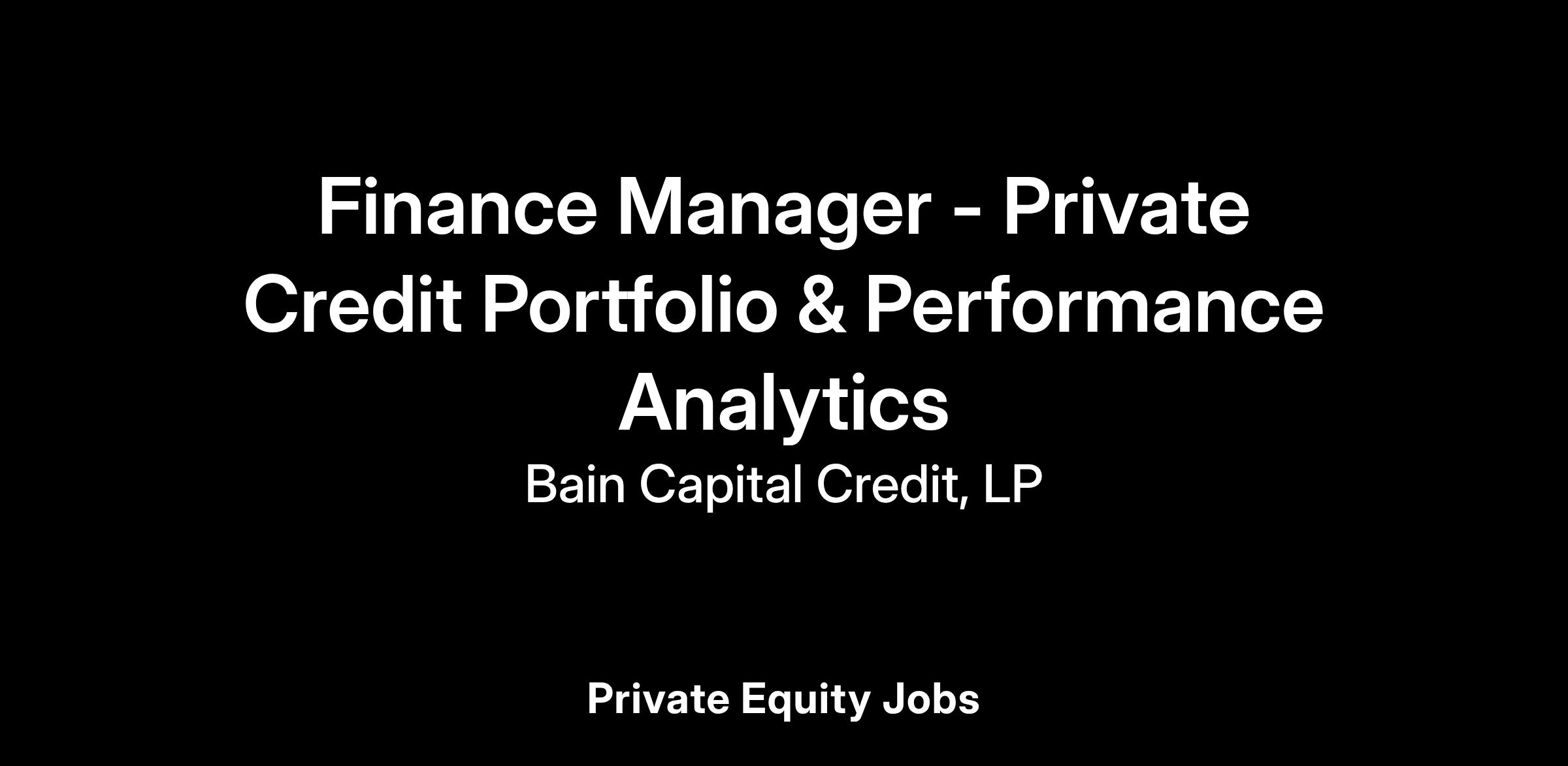 Drive the continuous development and tracking of key performance and portfolio metrics across Bain Capital Private Credit