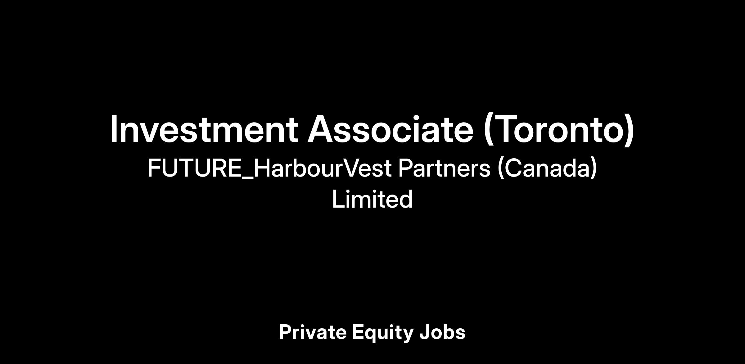 Investment Associate (Toronto)