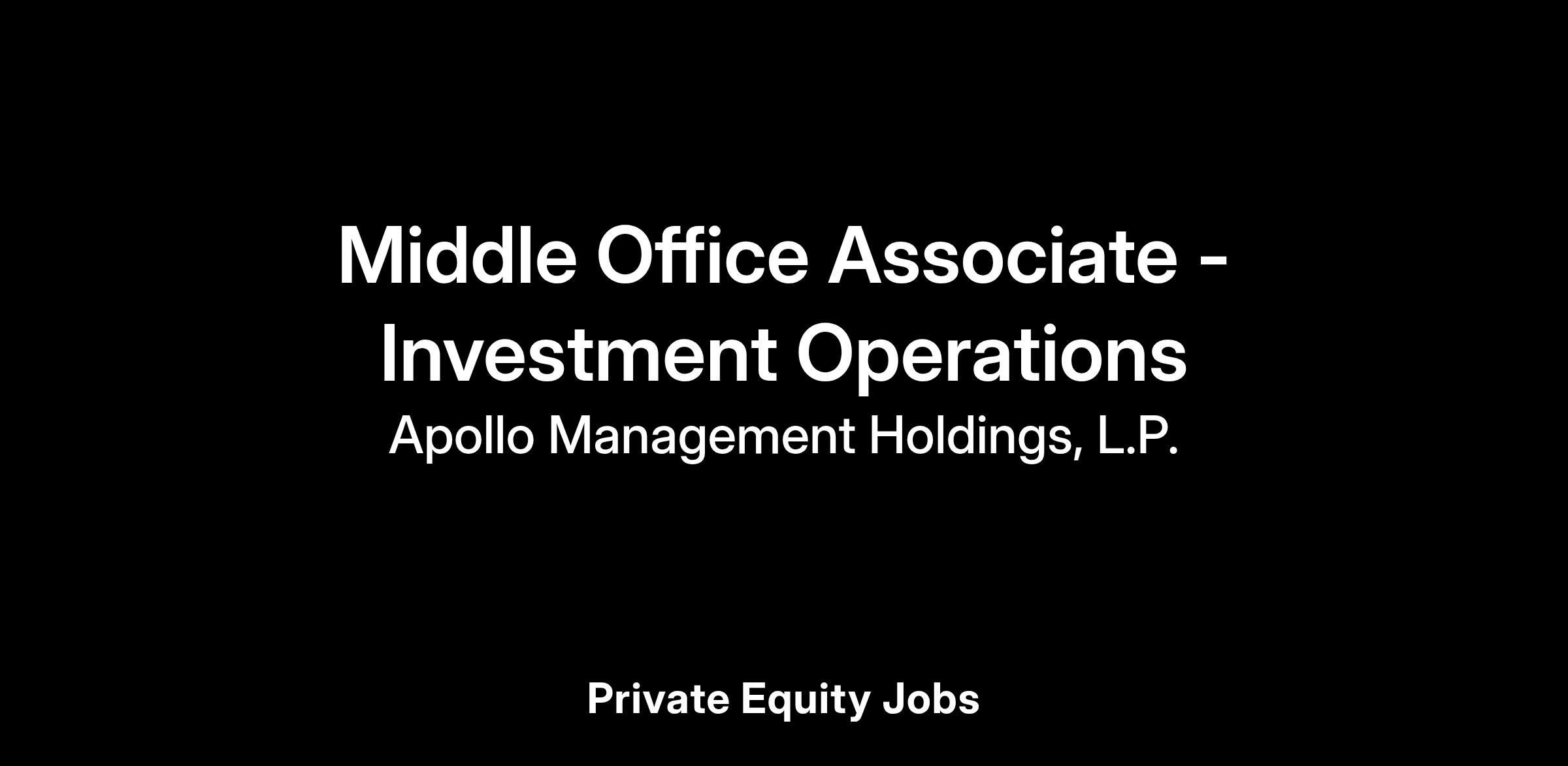 Apollo Global Management is seeking an individual to work as a Middle Office team member within its operations department. This team provides investment operational support to various Funds, Separately Managed Accounts and Portfolio companies managed by Apollo, a leading global alternative asset management company. Functional responsibilities will include oversight of end-to-end operational support functions (including but not limited to Trade Support, Collateral Management, Asset Servicing, Reconciliations), fund liquidity management, NAV compilation and maintenance, fund onboarding, new business strategy facilitation, and project management.