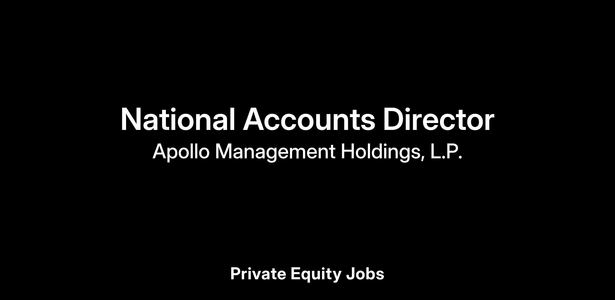 Apollo is seeking a highly motivated Director with excellent client engagement skills and strong knowledge of alternative investments to join our National Accounts team within the Global Wealth Management Solutions (“GWMS”) business. This individual will help with developing key account relationships for targeted clients within the United States. The National Accounts Director will play an important role in expanding Apollo’s distribution capabilities.
