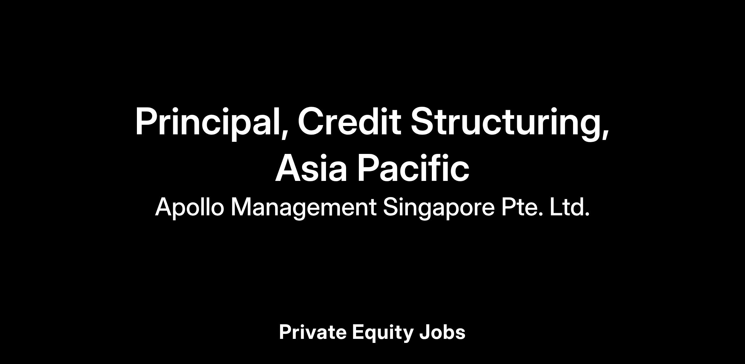 Apollo is seeking a highly accomplished, proactive, and commercially minded Principal to join its Credit Structuring team in APAC.