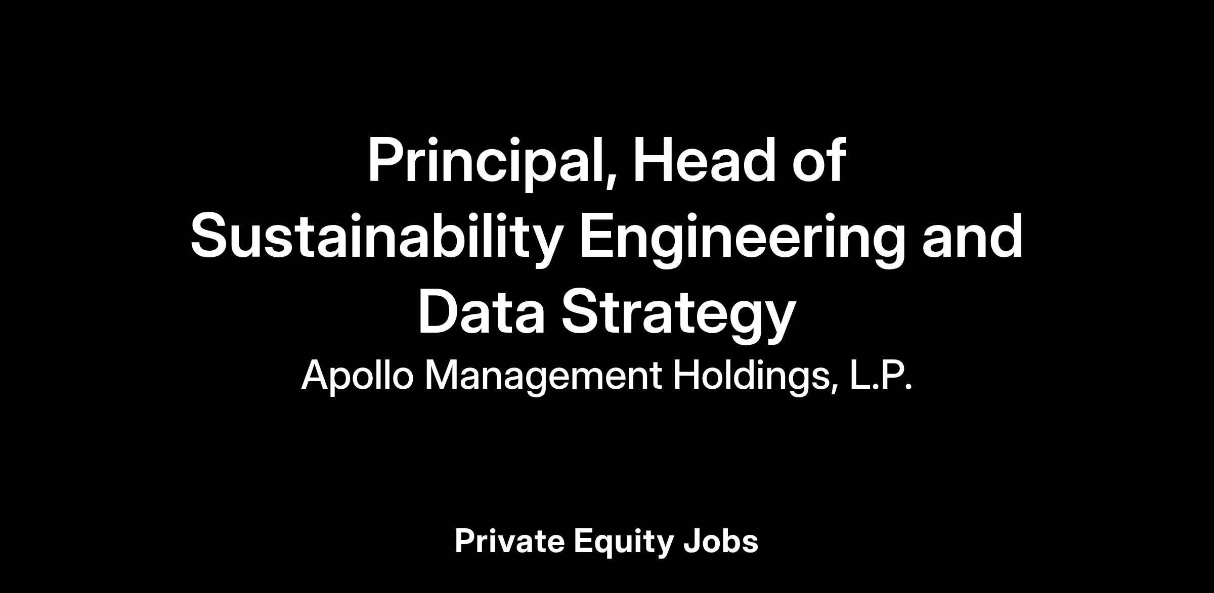 Apollo is seeking a Head of Sustainability Engineering and Data Strategy to join Global Engineering in close partnership with the Sustainability team. This individual will serve as Apollo’s subject matter expert in sustainability technology and data strategy, enhancing sustainability data integration into the investment process, product development, and reporting. The role involves working with members of the Global Engineering team, investment teams, and the dedicated sustainability team to produce proprietary sustainability investment insights. The successful candidate will play an integral role across the Equity, Hybrid, and Yield business lines.