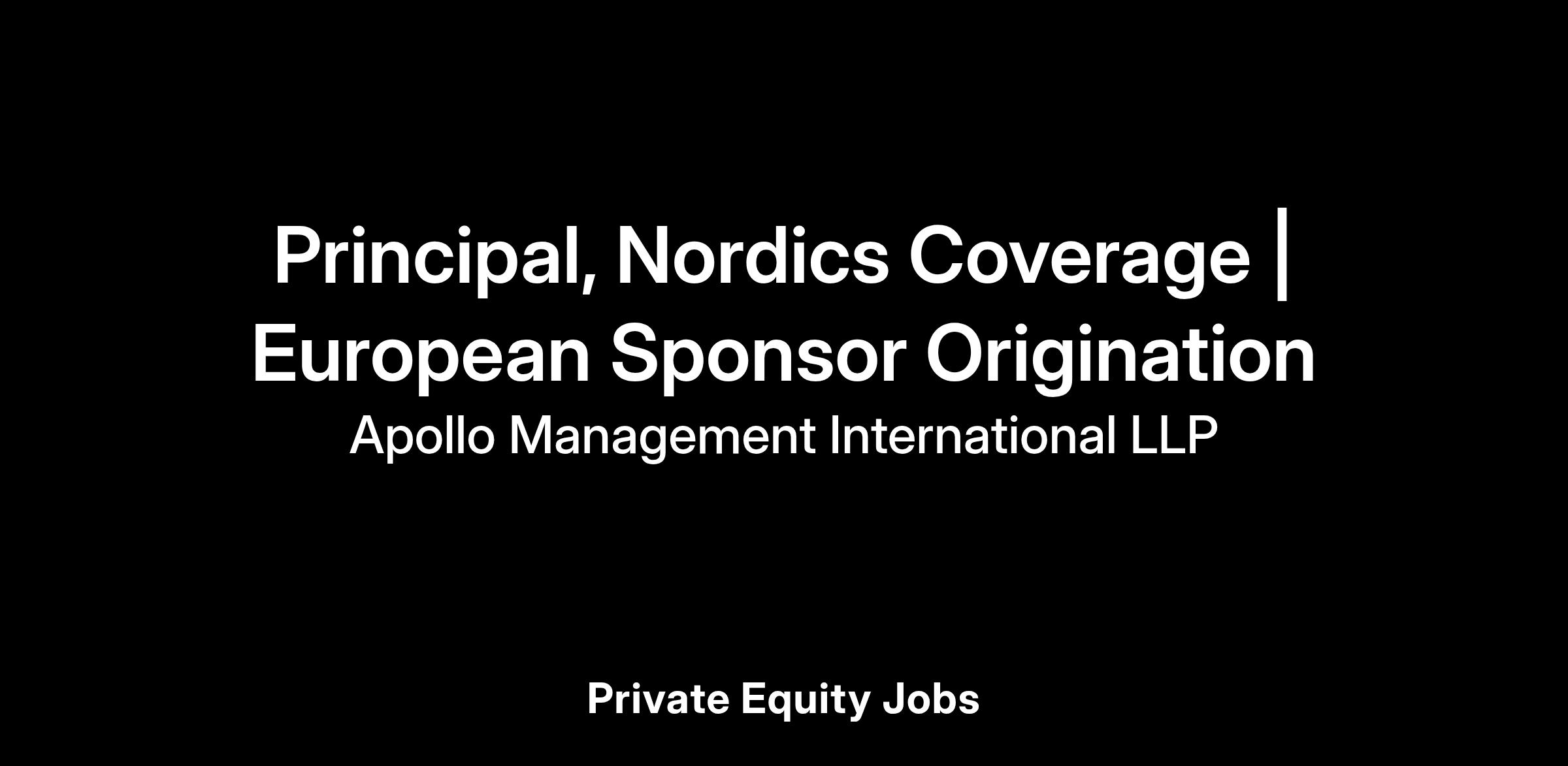 The role will be responsible for leading Apollo’s direct origination efforts across the Nordics. The focus will be on medium and large cap deals but also for building out other direct origination asset classes as appropriate.