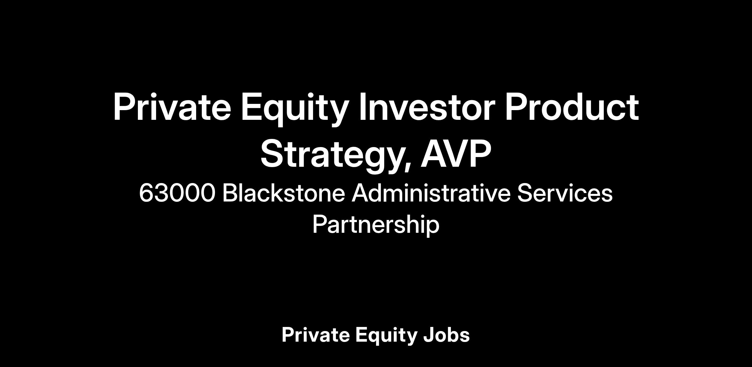 Job Title: Private Equity Investor Product Strategy, AVP