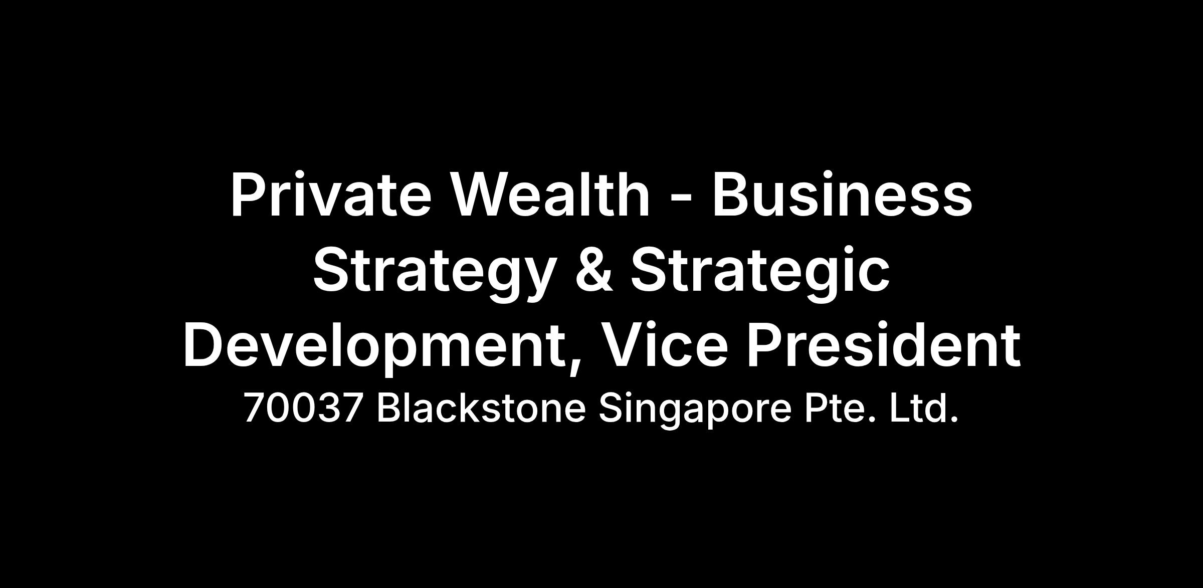 Job Title: Blackstone Private Wealth – APAC Business Strategy and Strategic Development Vice President
