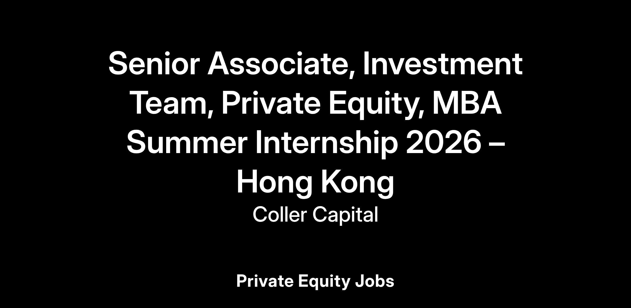 You will join a dedicated team of private equity professionals responsible for sourcing, evaluating, and executing investments in Hong Kong. At Coller, we value entrepreneurship and encourage you to take on broad responsibilities and bring in new ideas. After a week-long induction, interns will work on live transactions and assume responsibilities of a full-time senior associate. During the MBA internship, interns will be assigned mentors - a Senior Associate to help with the day-to-day and a Principal / Partner from the investment team for career development and progression