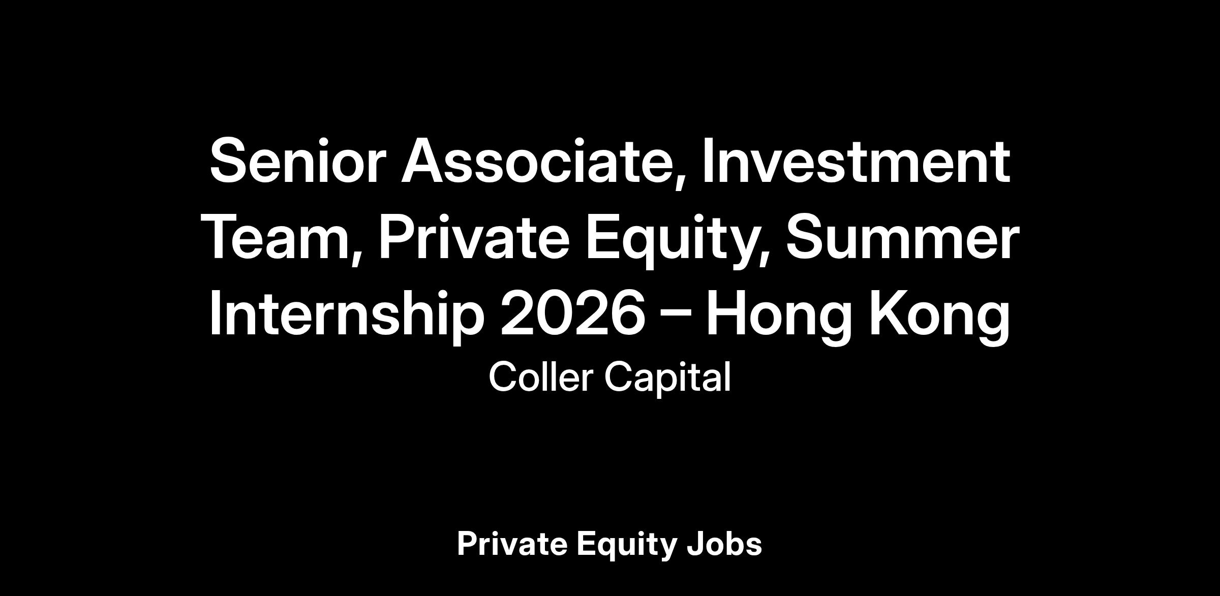 You will join a dedicated team of private equity professionals responsible for sourcing, evaluating, and executing investments in Hong Kong. At Coller, we value entrepreneurship and encourage you to take on broad responsibilities and bring in new ideas. After a week-long induction, interns will work on live transactions and assume responsibilities of a full-time senior associate. During the internship, interns will be assigned mentors - a Senior Associate to help with the day-to-day and a Principal / Partner from the investment team for career development and progression